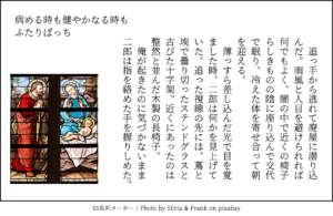 薄っすら差し込んだ光で目を覚ました時、二郎は何かを見上げていた。追った視線の先には、蔦と埃で曇り切ったステンドグラスと古びた十字架。近くにあったのは整然と並んだ木製の長椅子。