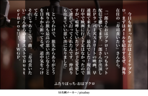 『一郎さんおはブクロ!いつもネット配信で聴いてます。一郎さんが出演したPラッパーズストリートの映画、早速観て来ました。最高でした!現在旅行中で映画に行く予定はなかったのですが、喧嘩していたツレが予定変更して連れて行ってくれたんです。仲直りも出来ていい思い出になりました』