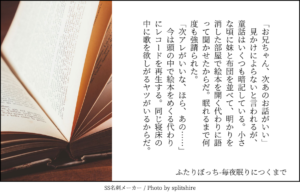 見かけによらないと言われるが、童話はいくつも暗記している。小さな頃に妹と布団を並べて、明かりを消した部屋で絵本を開く代わりに語って聞かせたからだ。眠れるまで何度も強請られた。