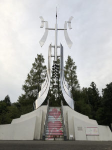 芝生エリアの奥の階段を上るとシンボルのカリオンタワーがあります。恋人の聖地として売り出しているのでこれでもかというほどハートが隠れています。