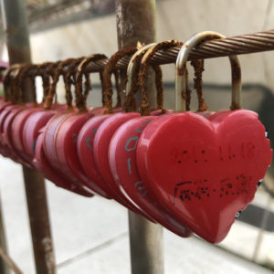 カリオンタワーにはこれまでに掛けられた南京錠がいっぱい!結構古いものもそのままかかっていて、中には錆びて地面に落ちてるものも。