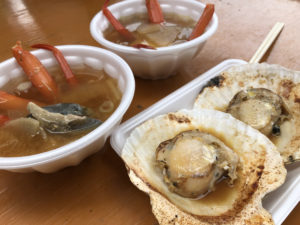 鮮魚センターの2階や少し移動した場所にレストランがいくつかあり、海鮮丼の他、カニが丸ごと乗ってるラーメンとかも。
