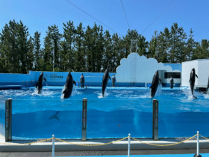 イルカショーが見られる水族館。前はラッコもいましたが亡くなってしまい、今は広い水槽にウミガラスがいます。